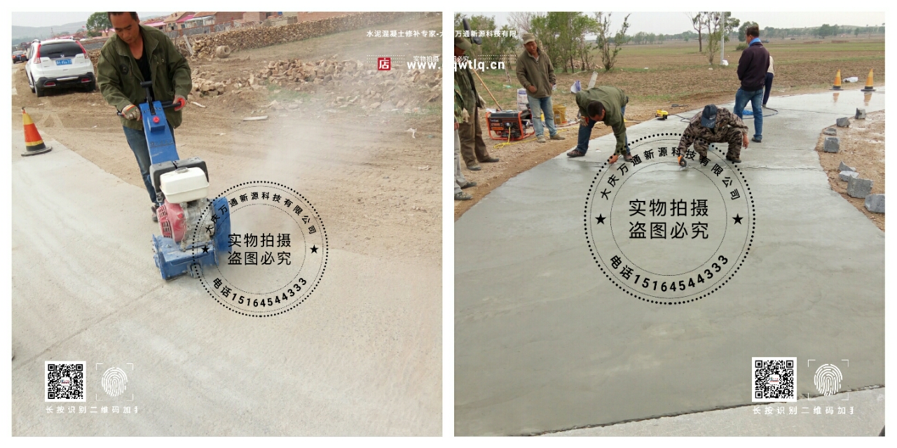 大慶萬通新源科技有限公司獨有的混凝土路面高強速補料,是水泥混凝土路面病害修復的好材料。疲勞、凍融循環、彎曲壓力、滲水和基層破壞等原因都會引起水泥路面的破損,從而帶來高昂的維護費用。與以往的剛性修補方法不同,混凝土水泥路面維修速補膠提供了一種獨特的柔性修補產品和技術,高柔性、高抗拉性,可跨伸縮縫施工和高抗壓性使得混凝土快補產品為水泥混凝土路面提供了******性的修補。傳統的剛性修補方案,如環氧砂漿和快干水泥產品,由于其自身的粘結失效,抗疲勞性低以及與原路面不同的伸縮系數,修補面會在短時間內失效或產生新的裂縫,需要反復修補,有效期短且費用高昂。大慶萬通新源科技有限公司的混凝土水泥路面維修速補膠可以隨原路面一起伸縮,移動,從而避免了粘結失效和產生新裂縫。萬通快補產品優異的粘結性、柔韌性和高防滑性,特別適用于水泥路面的淺層粘合修補,多邊角混凝土板層修補,跨伸縮縫修補以及路面沉陷修補。萬通混凝土病害修補料針對混凝土起皮起沙、斷板裂縫、蜂窩麻面、坑槽露石子、漏筋掉皮、橋梁的掉皮漏筋快速通車使用時間長。應用萬通快補產品,施工后一天就可以恢復交通。大慶萬通新源科技有限公司的萬通水泥路面維修速補膠適用于高速公路、機場路面、農村村村通路面、廠坪、學校操場、市區公路、小區路面、橋梁、水泥路面的修補。使用萬通特快補材料修補路面可以一勞永逸! 水泥地面起砂怎么辦,混凝土修補劑混凝土地面起砂,混凝土地面修補,地面起砂怎么辦,
